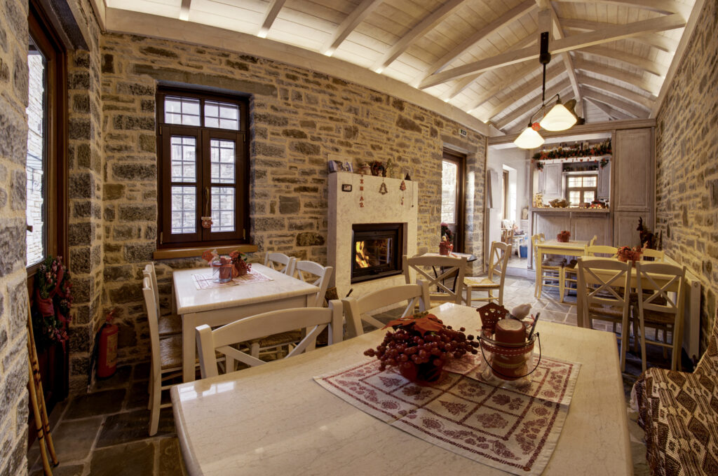 Το κατάλυμα διαθέτει ευρύχωρα δωμάτια με τζάκι και θέα στην εσωτερική αυλή του ξενώνα και το φυσικό τοπίο που περιβάλλει το χωριό.